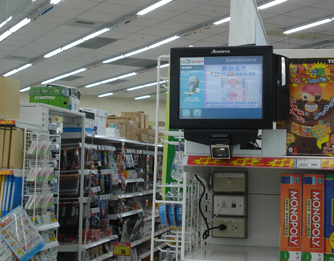 Sistema de consulta en pantalla que permite a los clientes acercar un producto al lector de código de barras para mostrar el precio e información detallada del producto.